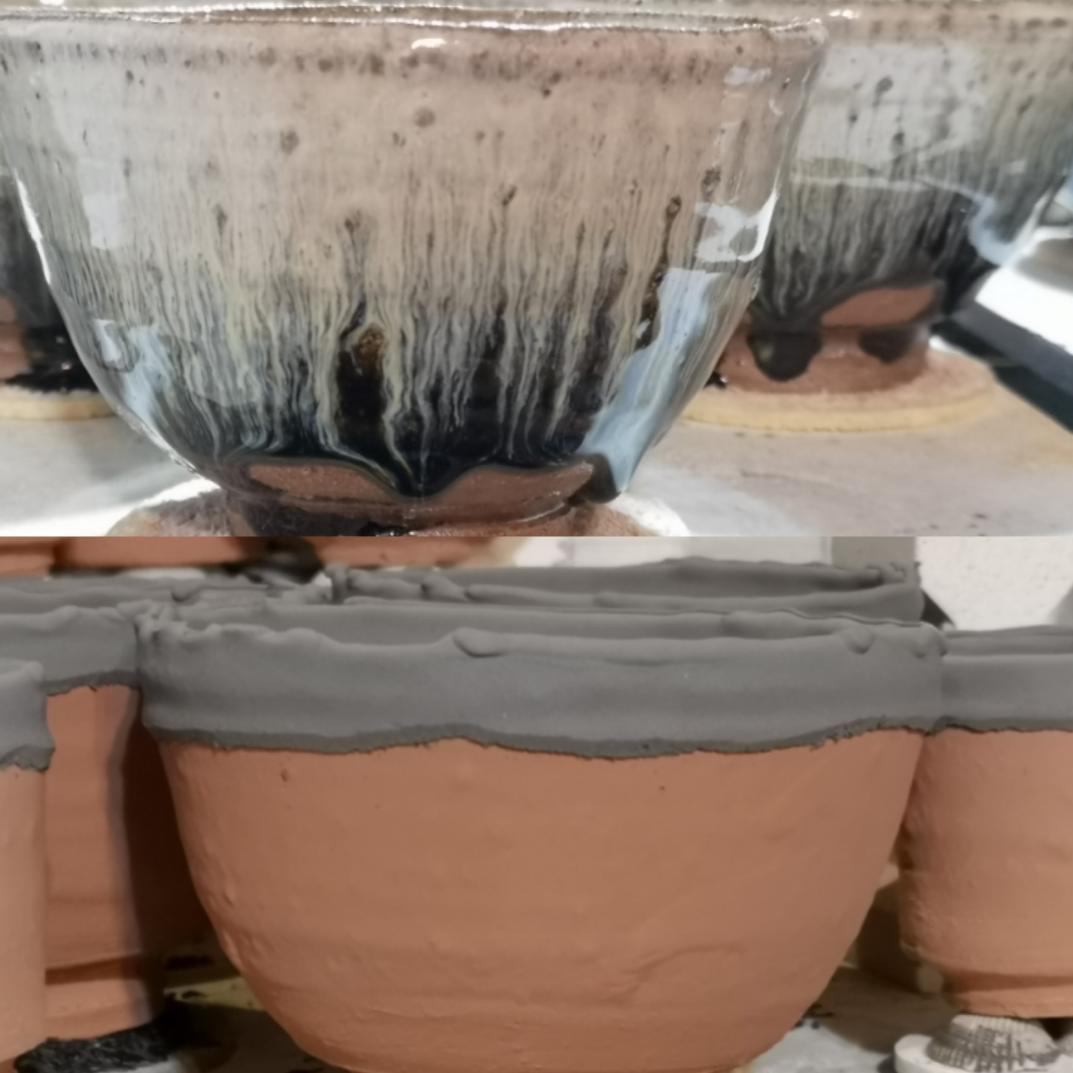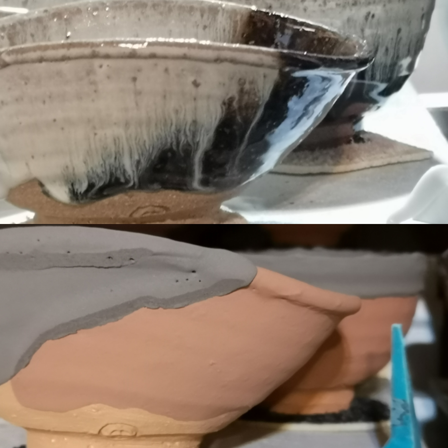 The normal madara glaze ended up being too low in silica, and going clear in most cases. Shirakawa madara pinholed in most cases. I’d forgotten about this behaviour. New Madara glaze test shows good color, but also, low in silica perhaps, needs more straw ash added (1kg).