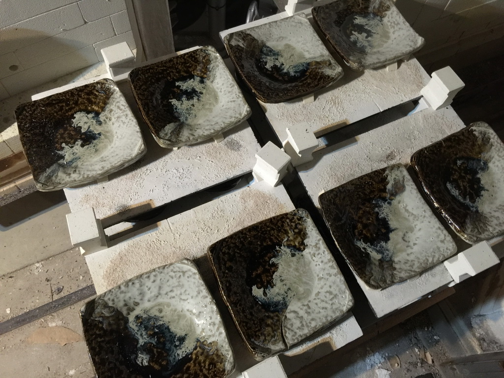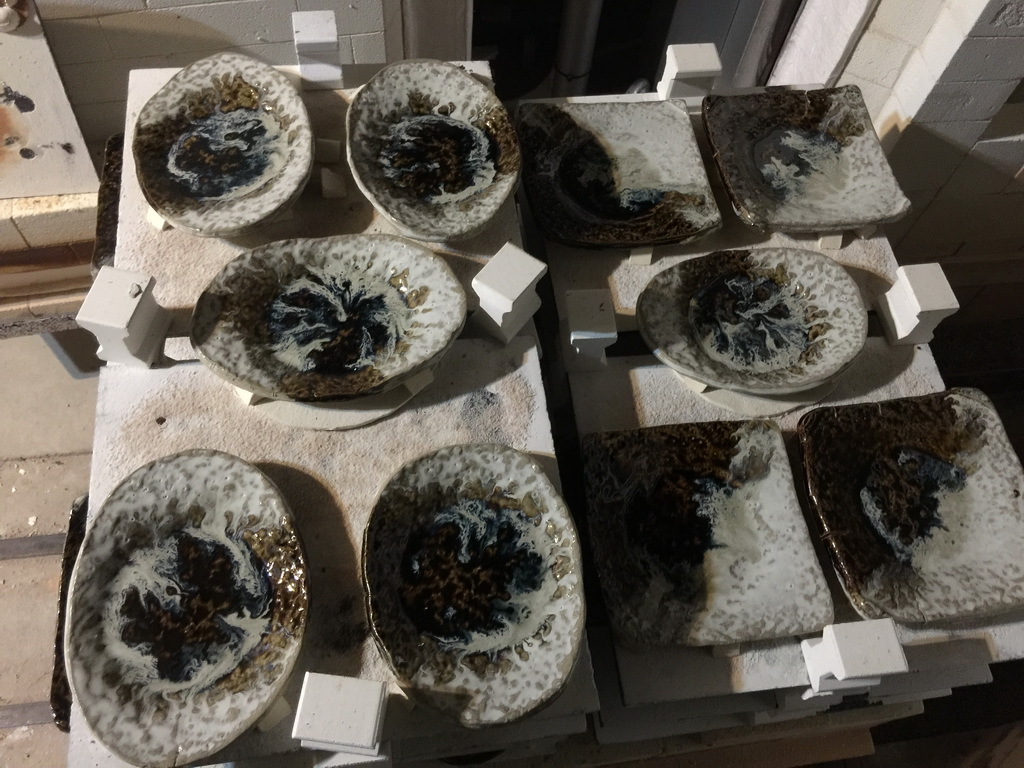 This firing of the kiln went too long, resulting in Orton cone 11 flat. Ideally, it would be cone 11 touching, then sagging a bit.