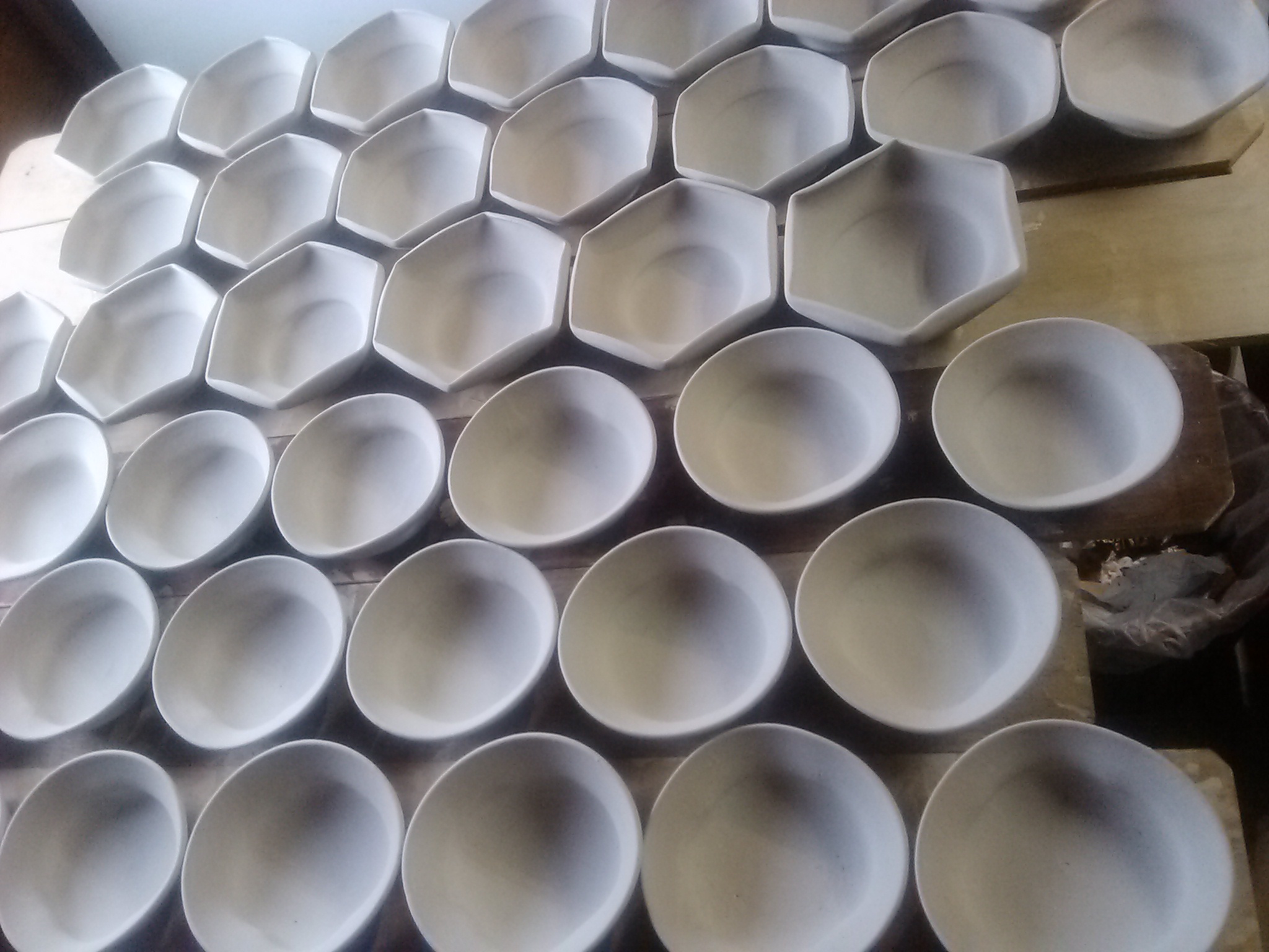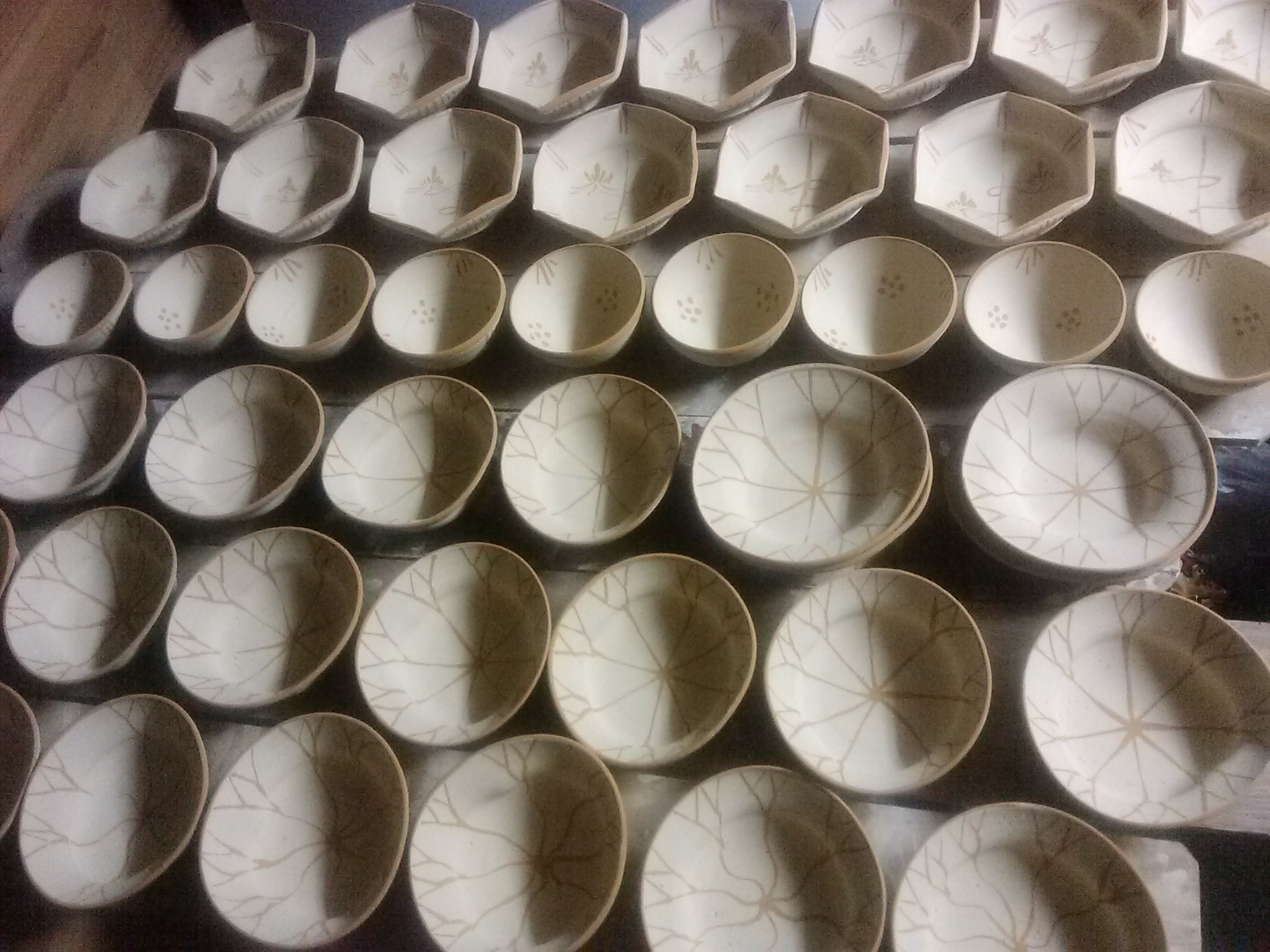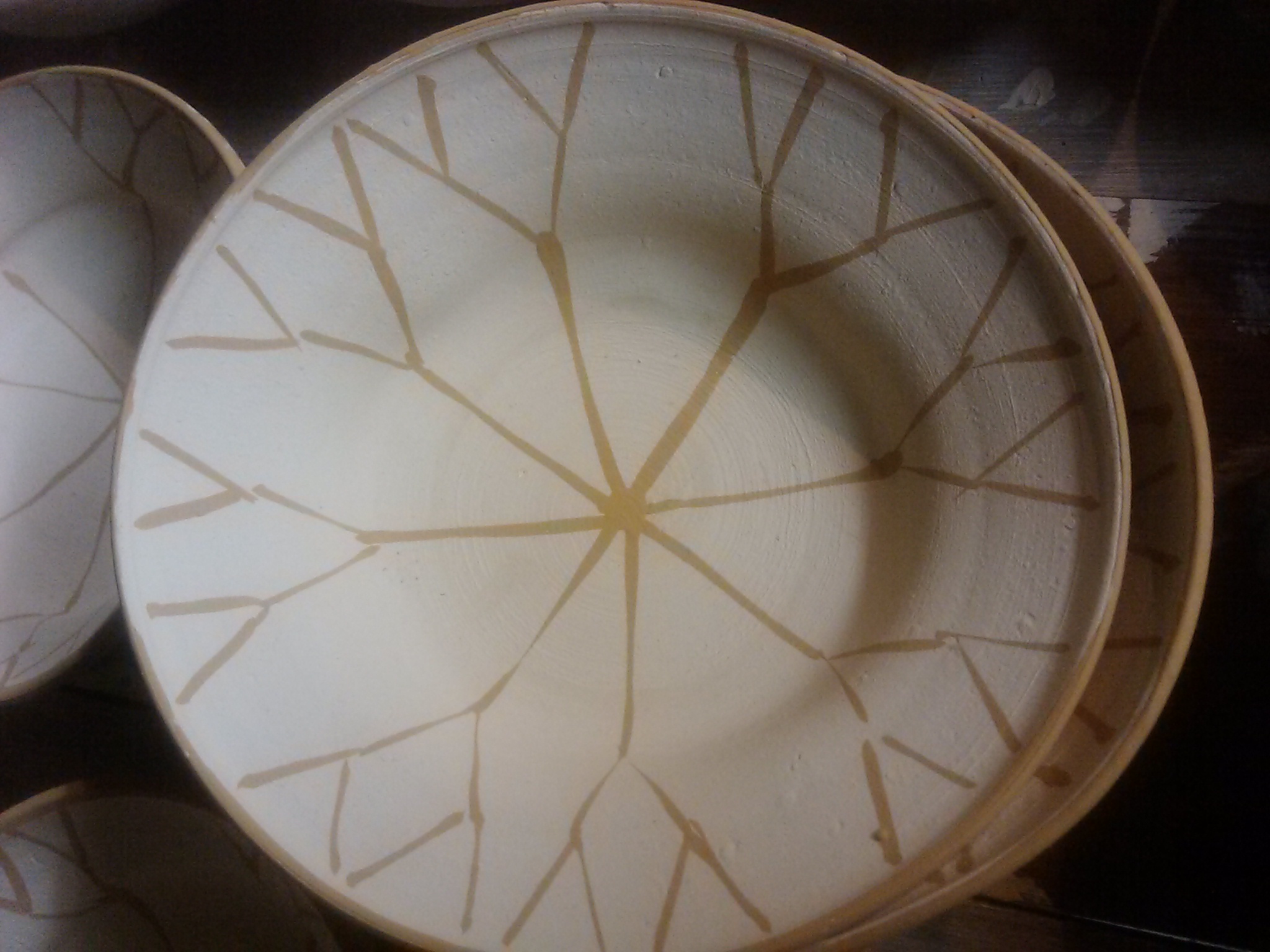 Now, I tried doing the bending and folding at various stages of drying and I’m here to tell you that it is best done when they are still sticky wet. I suppose it depends on your clay, but for the stuff we have around here, bending and folding is like asking for fate to show up in your studio with a big baseball bat.