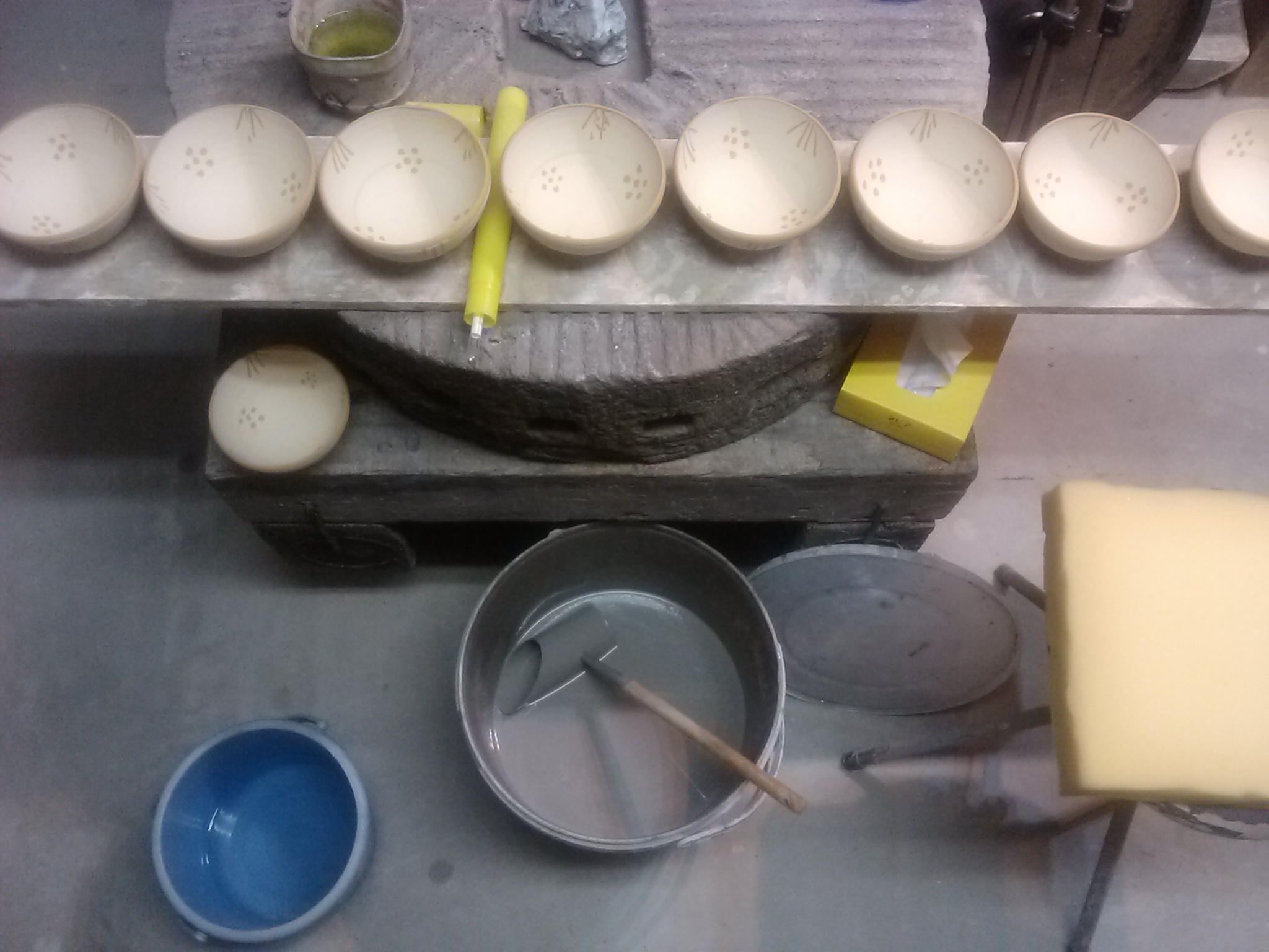 I managed to find the same 5 piece set of old Karatsu Hamaguri dishes (clam shaped dishes) in 3 different publications (above). And, none of them show the bottom of the dish, or a closeup of the folded lip that makes the clam shape. I made a few, tried cutting the lip and overlapping, pulling the lip up and folding over, and a few more things, but all I ended up with were forms that just didn’t click.