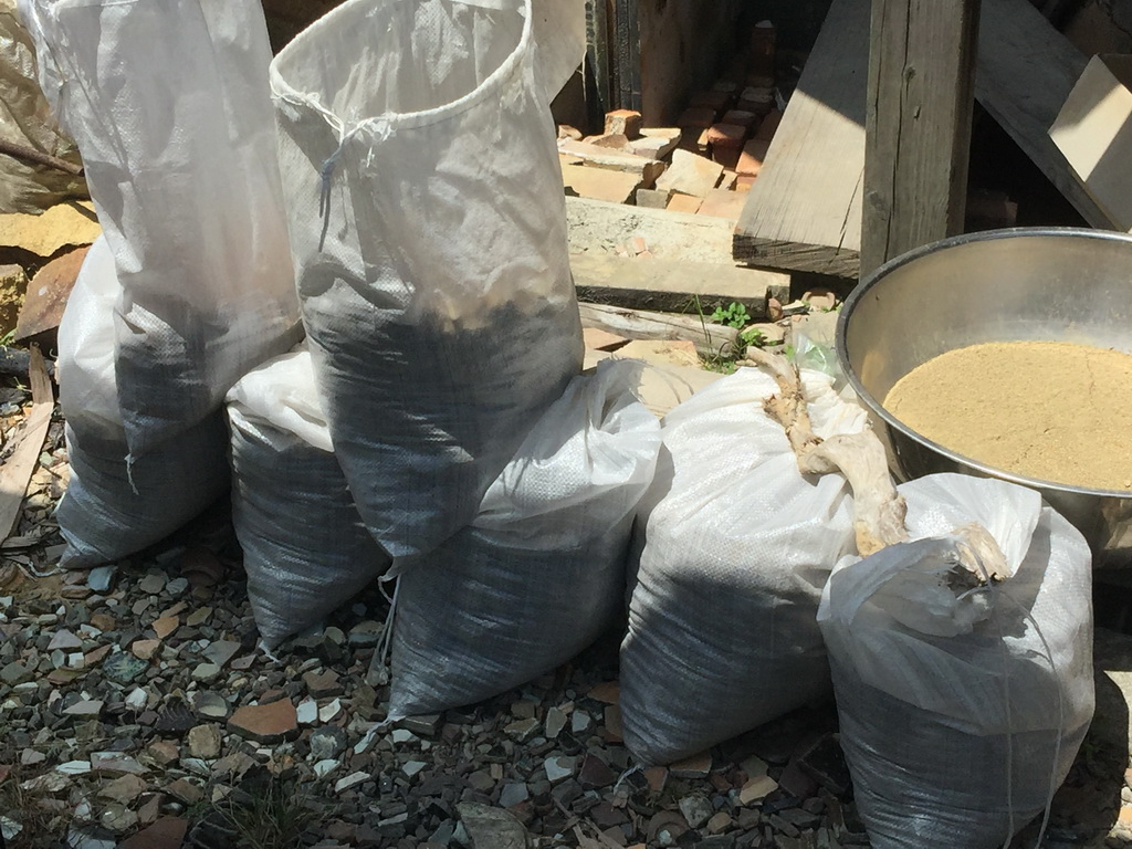 I was lucky enough to find some easily accessible clay the other day on a morning bike ride. I’ve been spending some time processing it and thought I’d share. Here’s the hill and the pictures of the bagged clay: