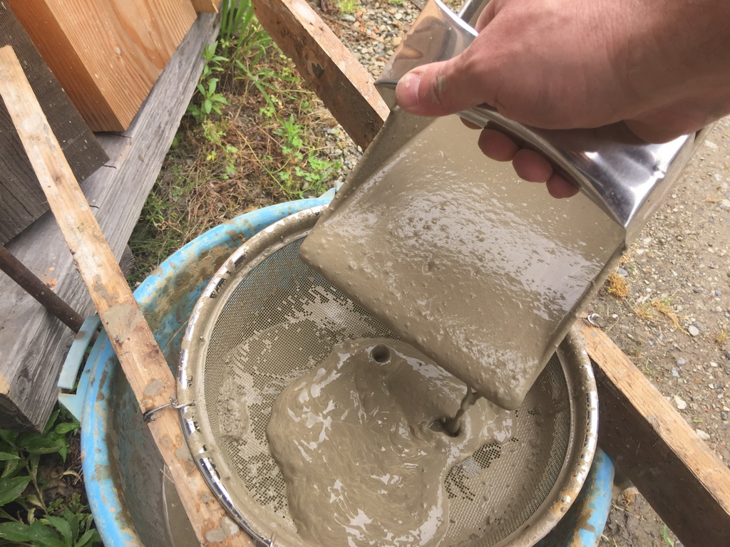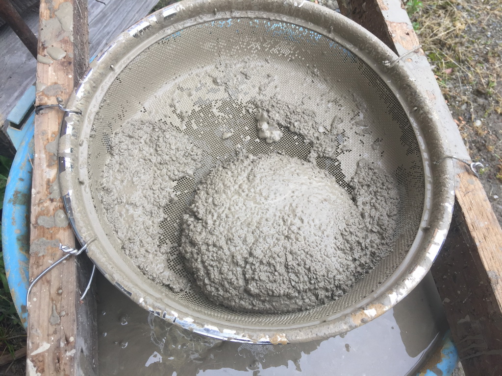 After bringing it home, I transferred it to large jars and added water, then mixed violently with a drill mixer to break it all up. After skimming off the junk that floats up, I mix it up a few times a day for about 3 days. Once it is mostly made into a slurry I start sieving it into another container. Whatever doesn’t pass the sieve goes back in the jar to get mixed again, and it eventually (mostly) all breaks down.