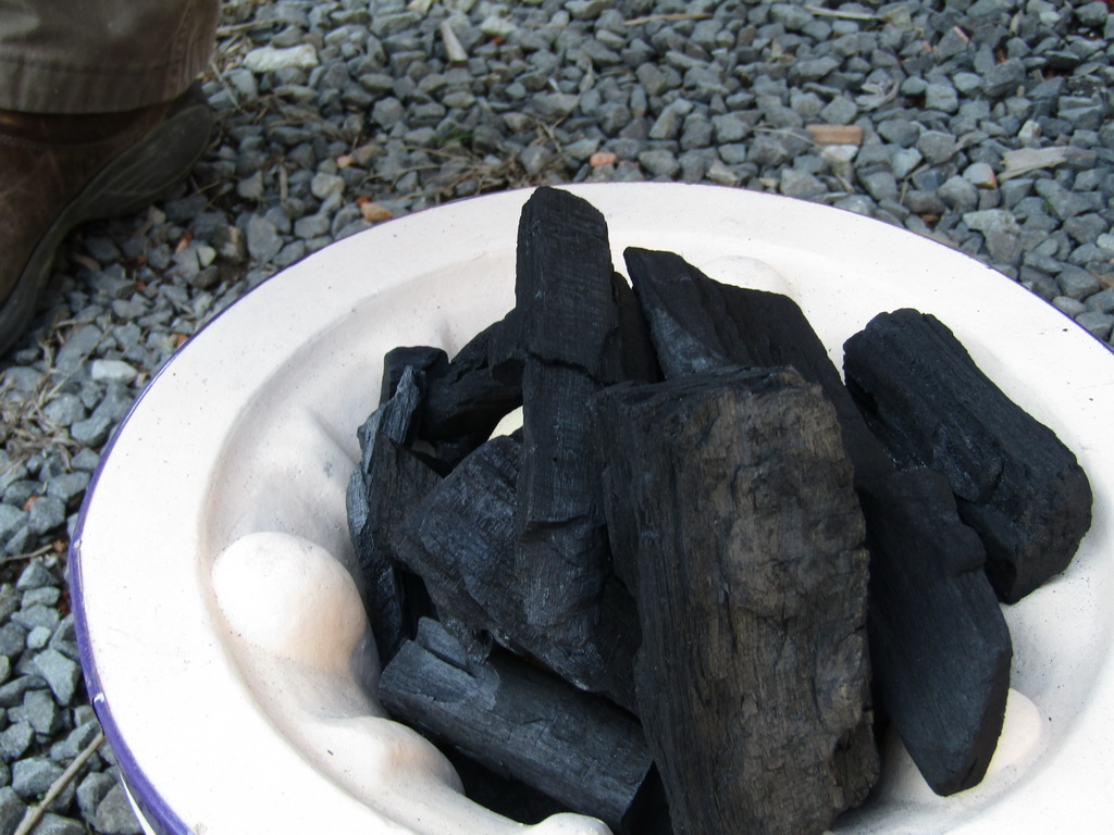 The first firing might take about 45 minutes, because of the time to heat everything up. From the second firing, 30 minutes seems to be enough to fire the clay. If you have time, you can go longer, and ash from the charcoal will leave more green ‘glaze’ on the surface of the pot.