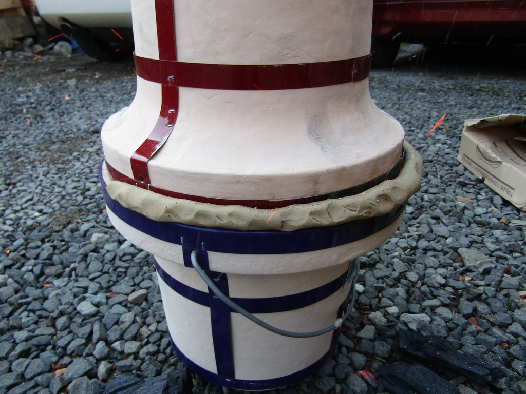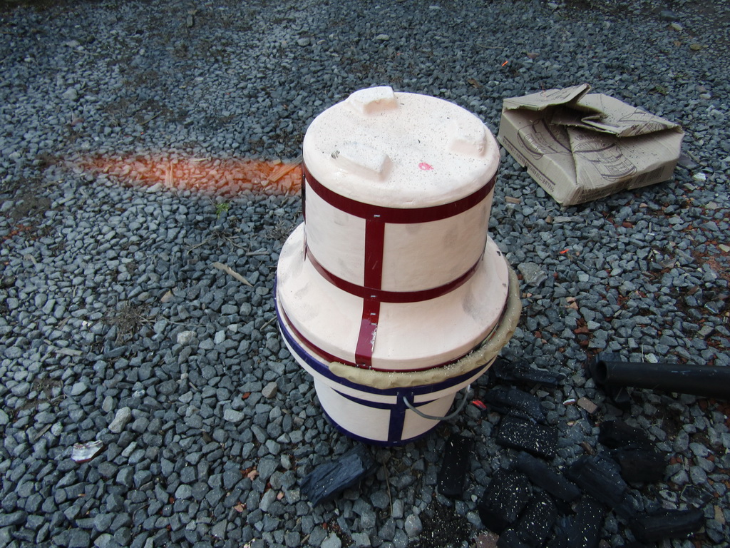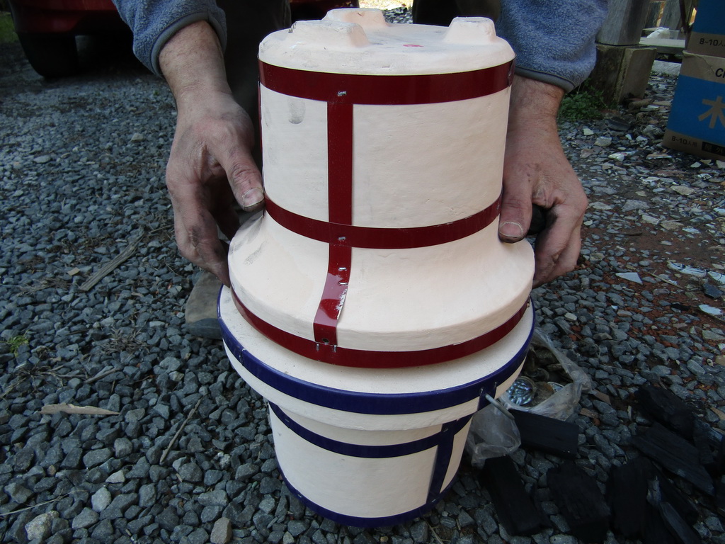 Lately I’ve been working on a firing method that is accessible to everyone, with items available at most home centers. I got this idea years ago when a Japanese potter named Yoshida (don’t remember his first name) made a splash by introducing “Shichirin Togei”, which used a small Japanese BBQ, called a shichirin, to fire small objects. This developed into a book called Minigama, which I never read, but outlines the construction of small handbuilt kilns from fireclay and fired with wood, charcoal, and forced air. I think the book is out of print now.
