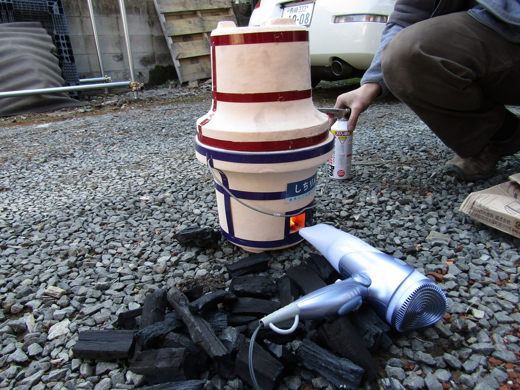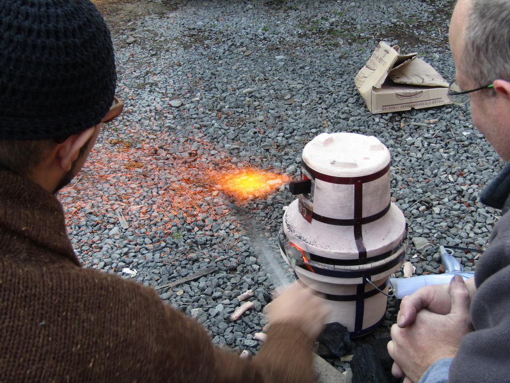Now that that is done, time for the fun to start! Use a hand torch to light charcoal, then use a hair dryer to get things burning hot.