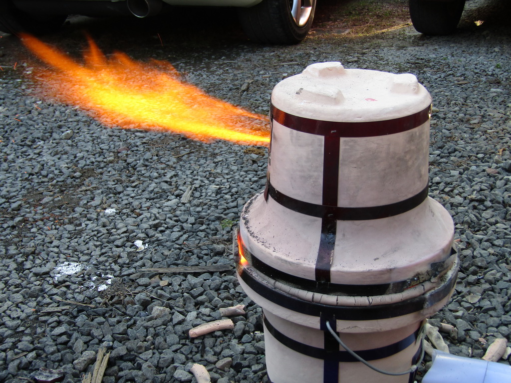 Now just wait for things to heat up, it will take a few minutes, after which flames will start to emerge from the top damper hole.