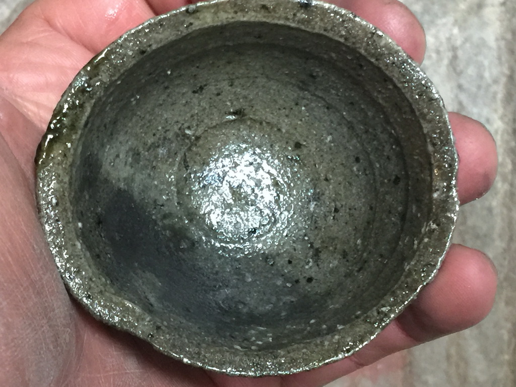 The only difference between the pieces is the clay body. The teabowl is clay/sandstone 50/50, and the smaller cup is clay/sandstone 10/90.