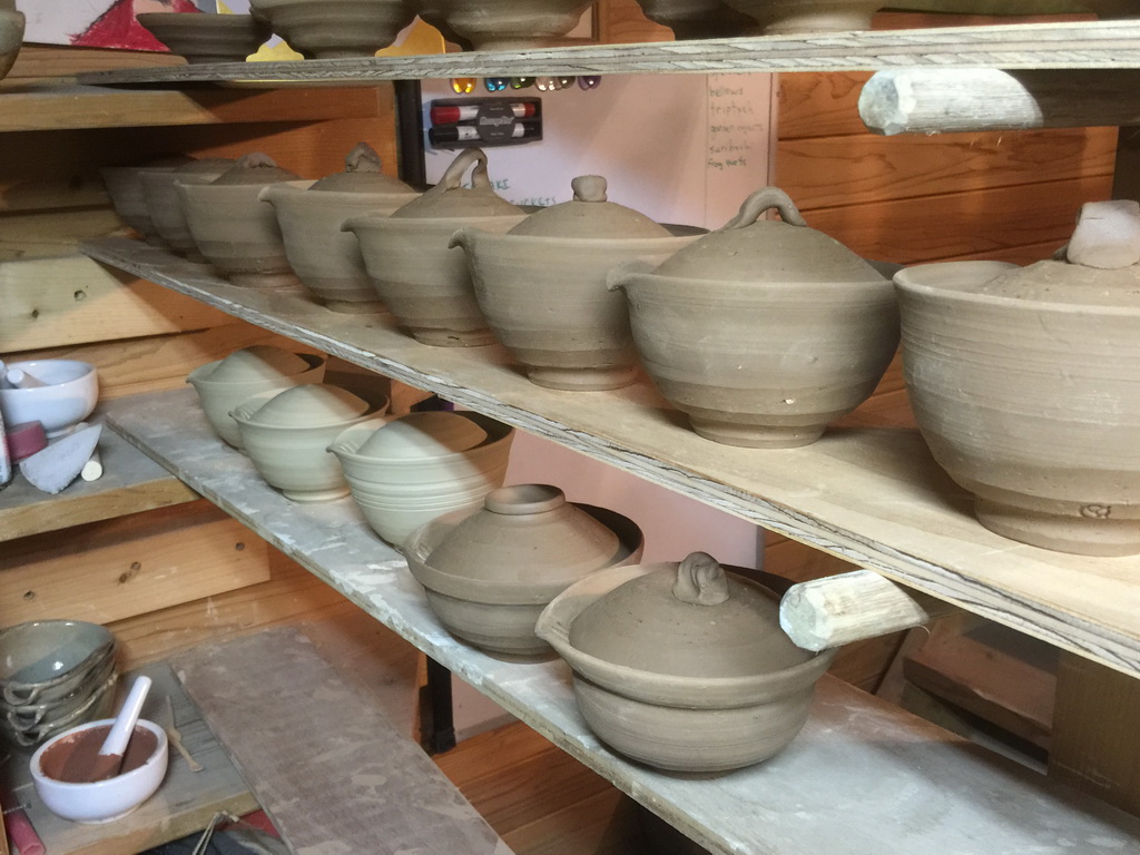 Chosen Karatsu came out pretty good, but the white was on too heavy, running down the pots too much. It still came out looking ok because of the clay.