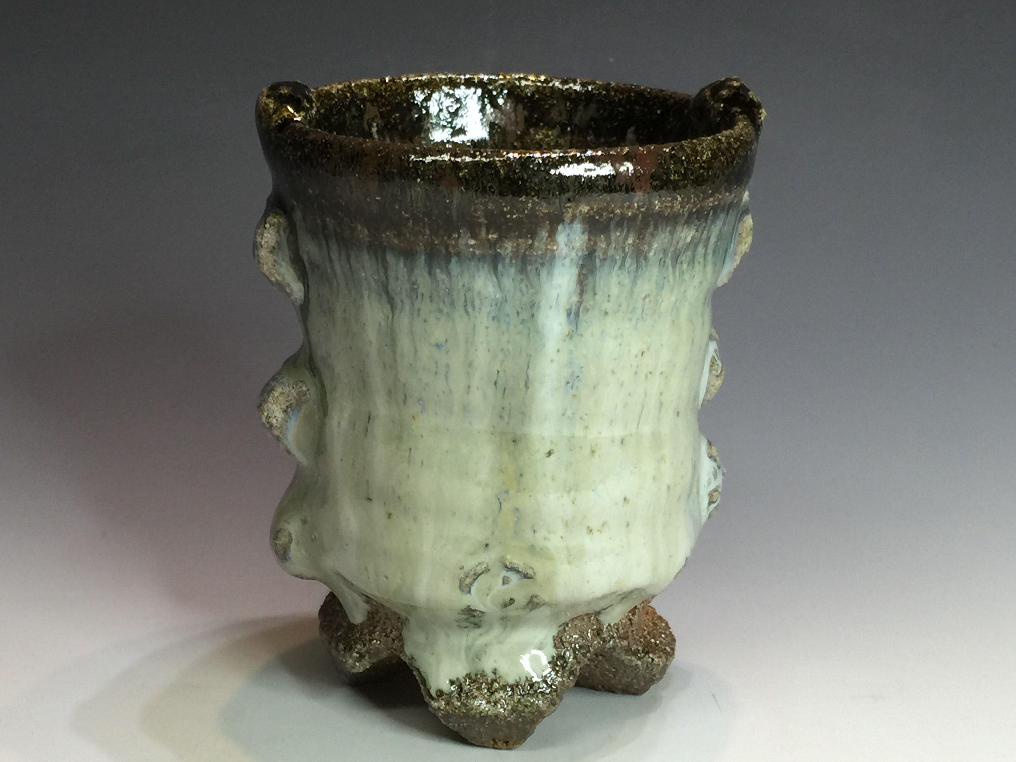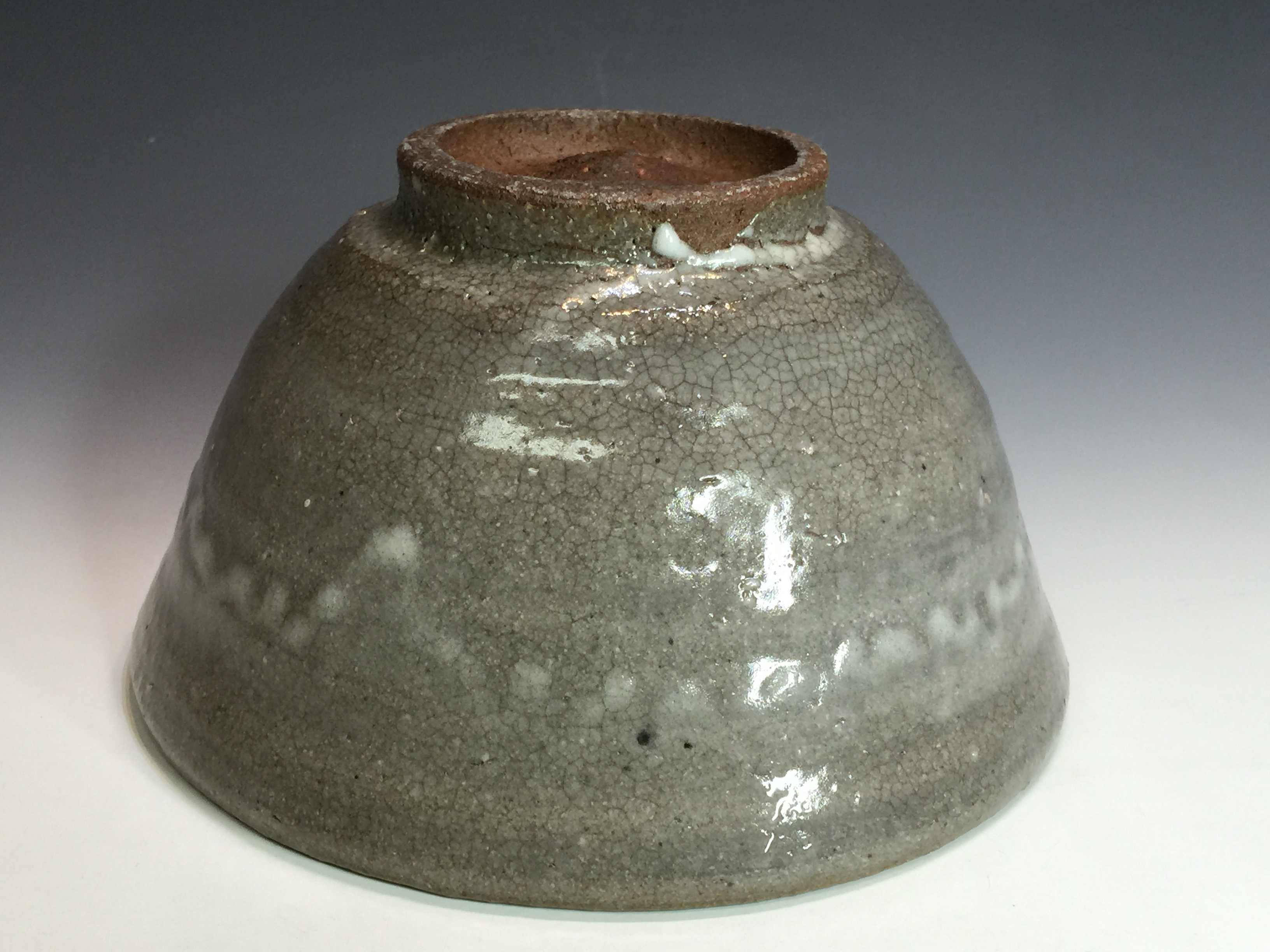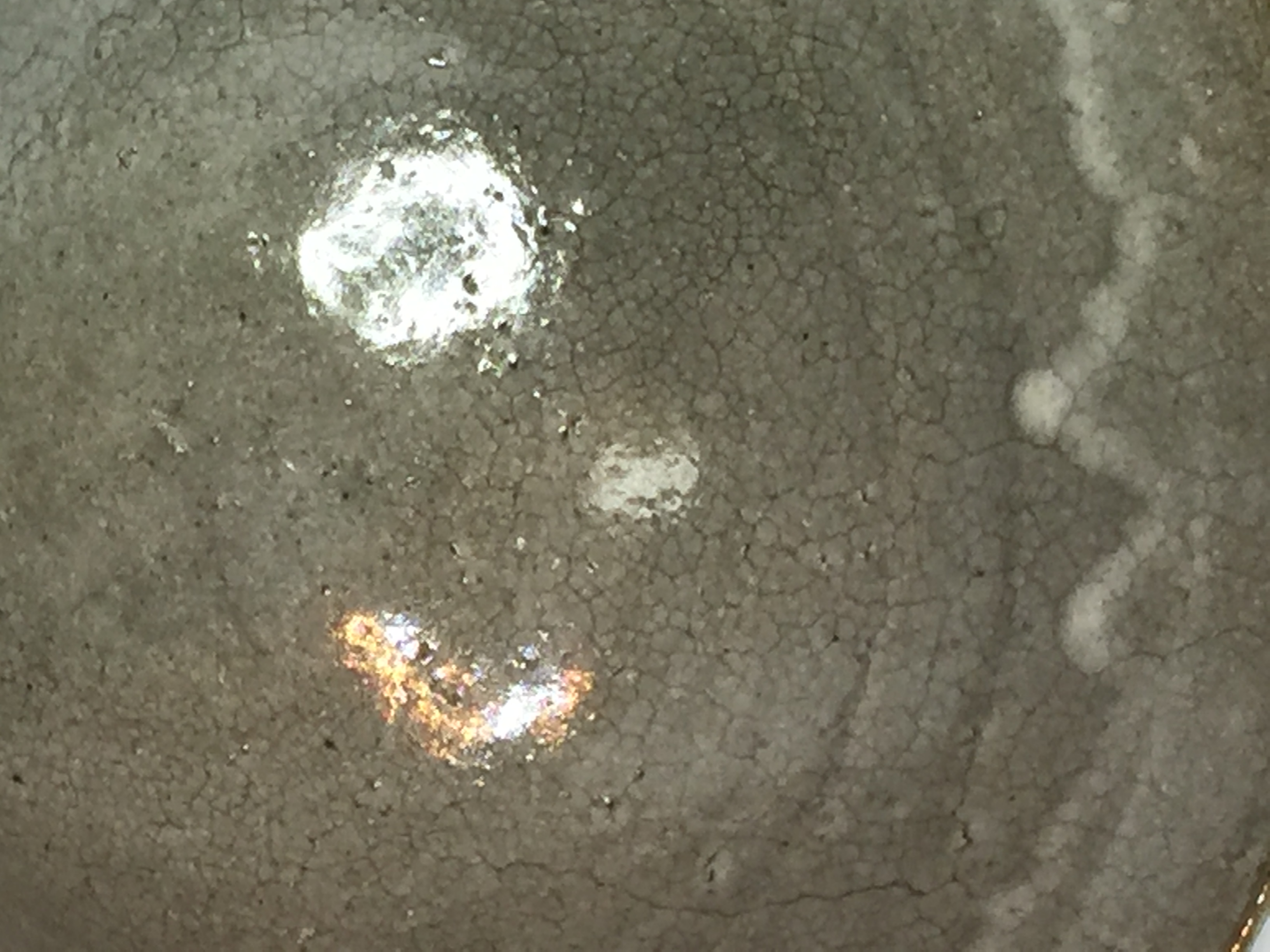 Because the body and the glaze were vitrified, but the white slip in between wasn’t, spots (where the slip was thickest) on the rim separated from the body and had to be restored with lacquer and gold (*1)