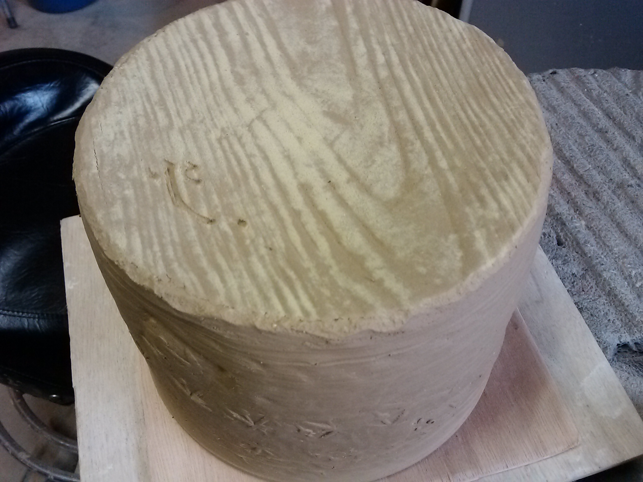 Anyway, I had been using someone else’s risers for my plates, but since I needed my own anyway, I spent a few hours today mixing up some fireclay and press molded my own risers. Below are pictures of the very simple process. These risers will be used during drying and also during firing to support corners and edges. The fire clay is very rough and easy to grind off if the glaze runs and sticks to it.