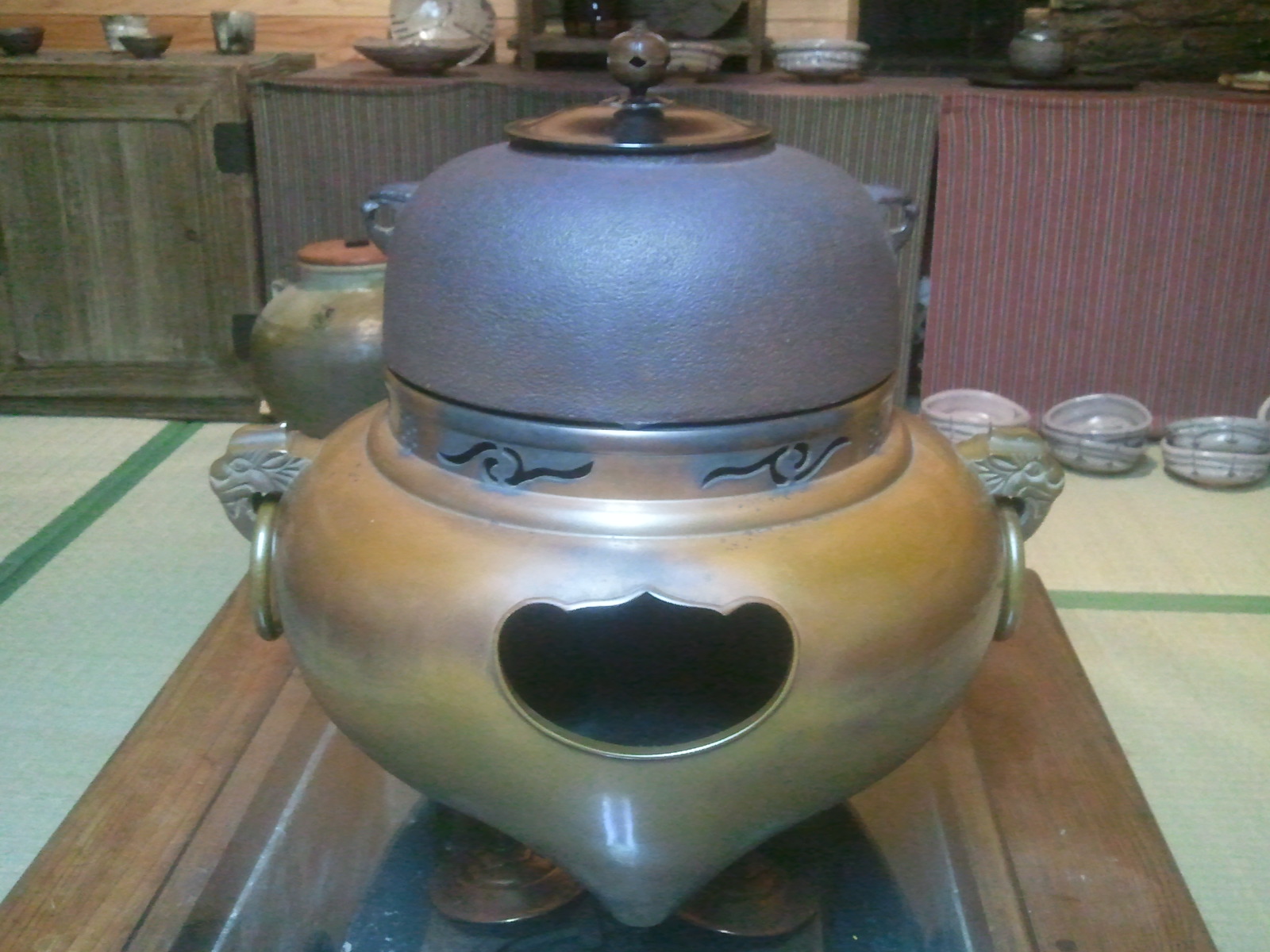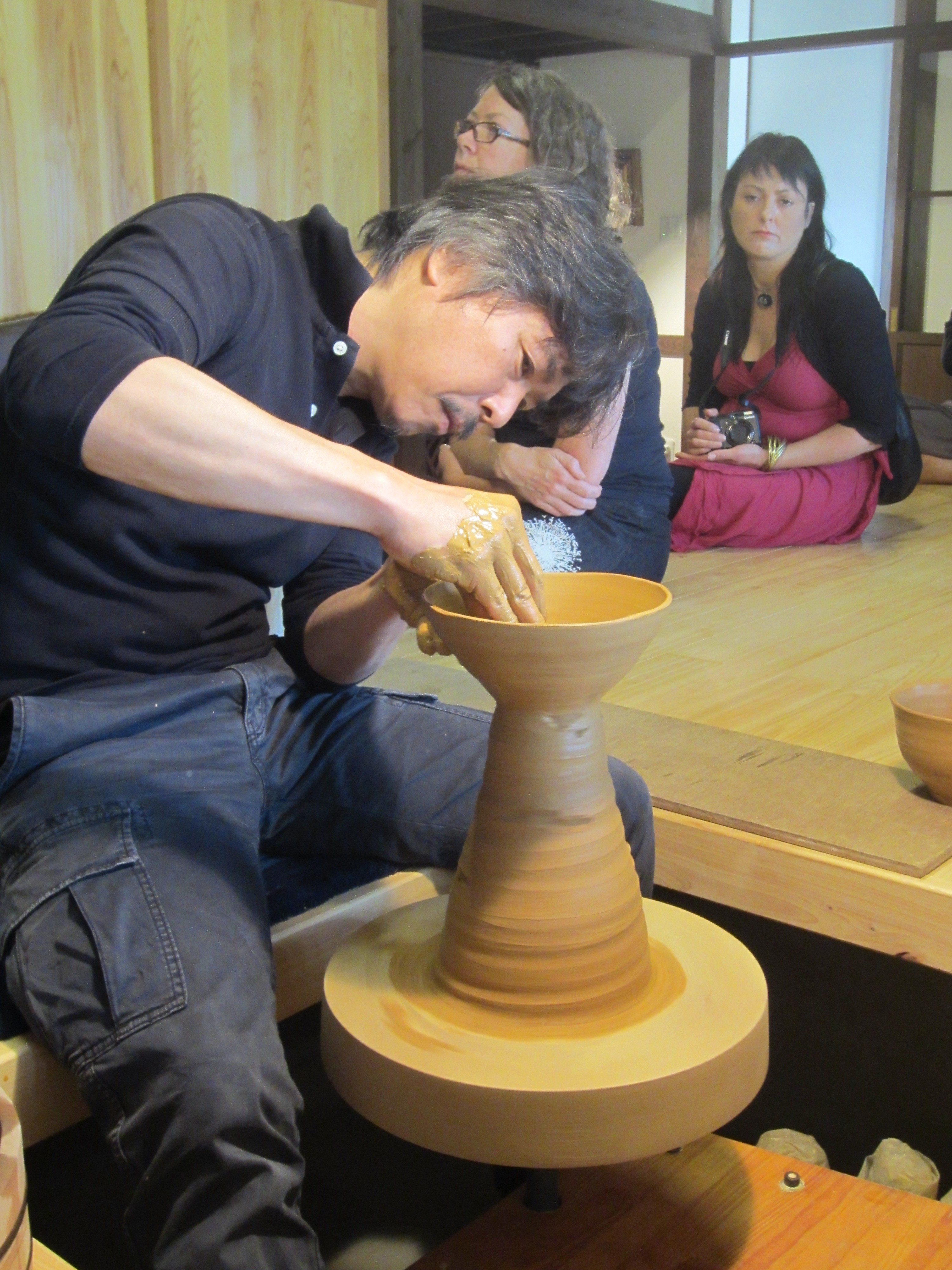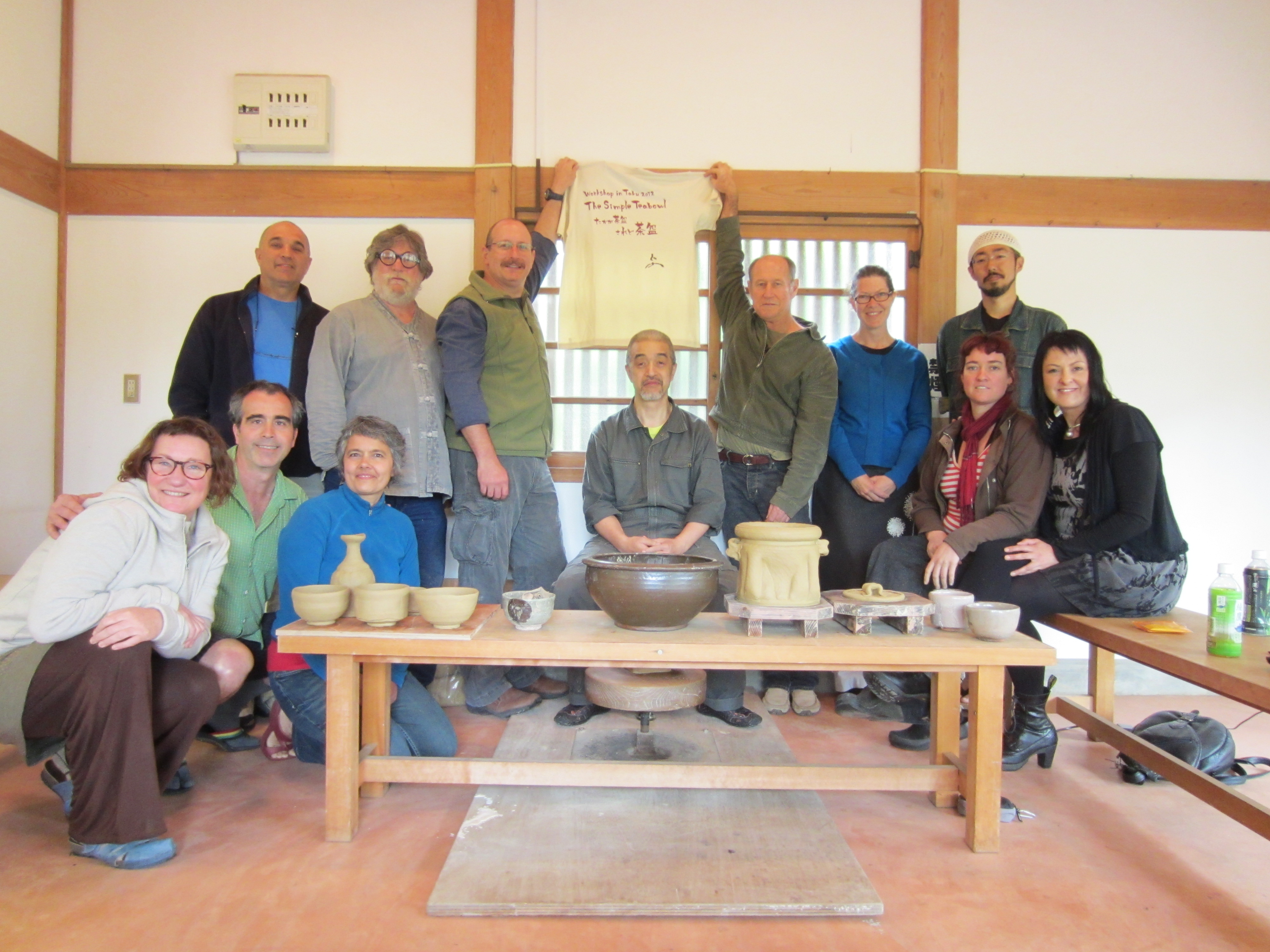 From the first refire load, my favorite pot is a porcelain teabowl glazed with rice straw ash glaze. I don’t normally work in porcelain, but in my search for bodies that vitrify a little better than the local clays, I’ve started using partly or mostly porcelain in some of my work. This particular bowl is porcelain with as much feldspar sandstone mixed in as I could manage, and still have it wedge-able.