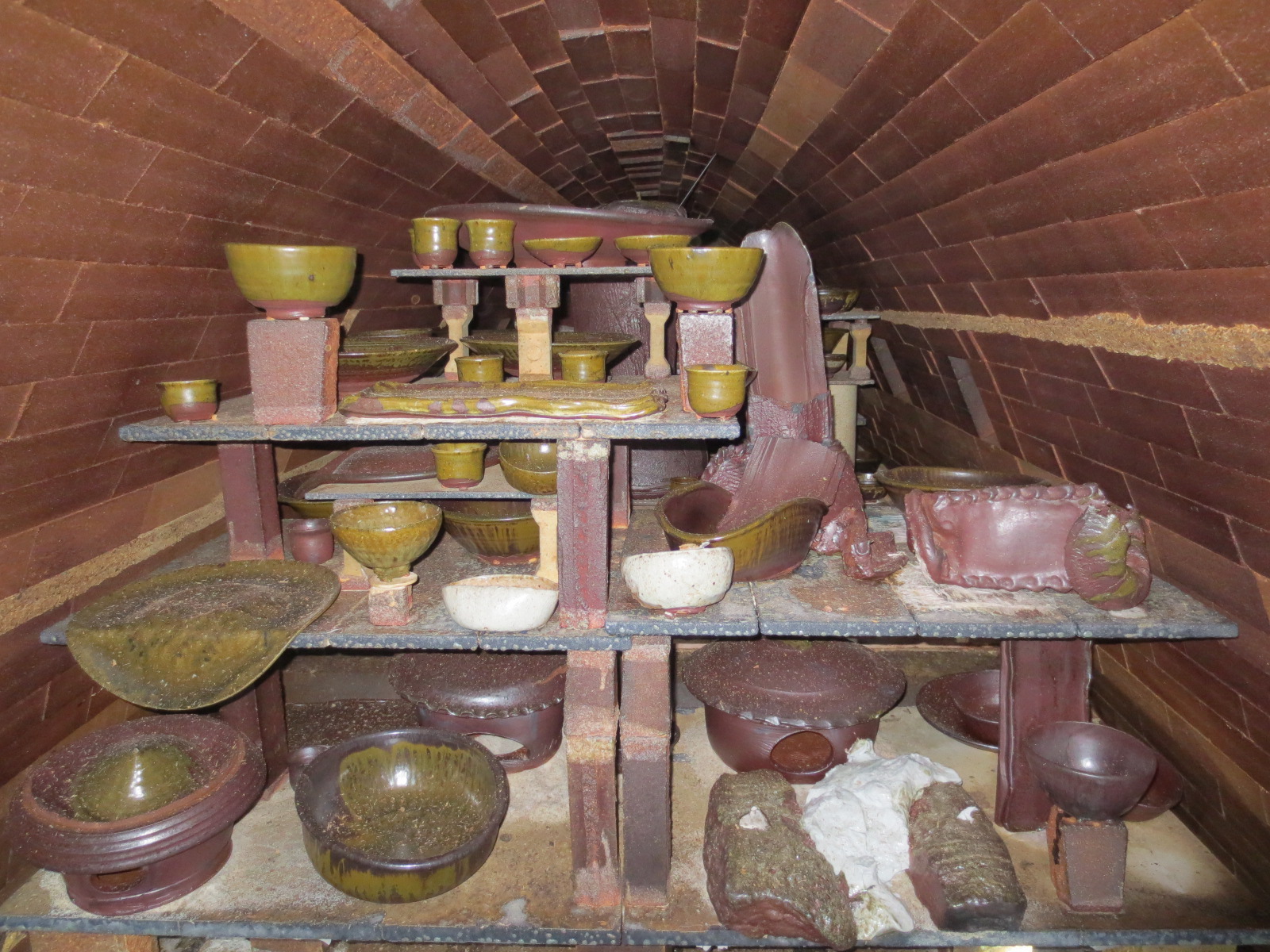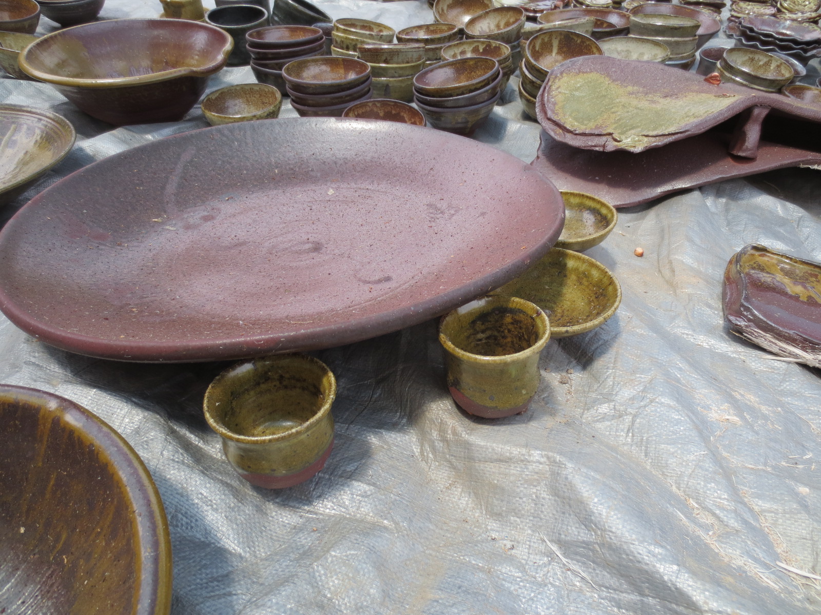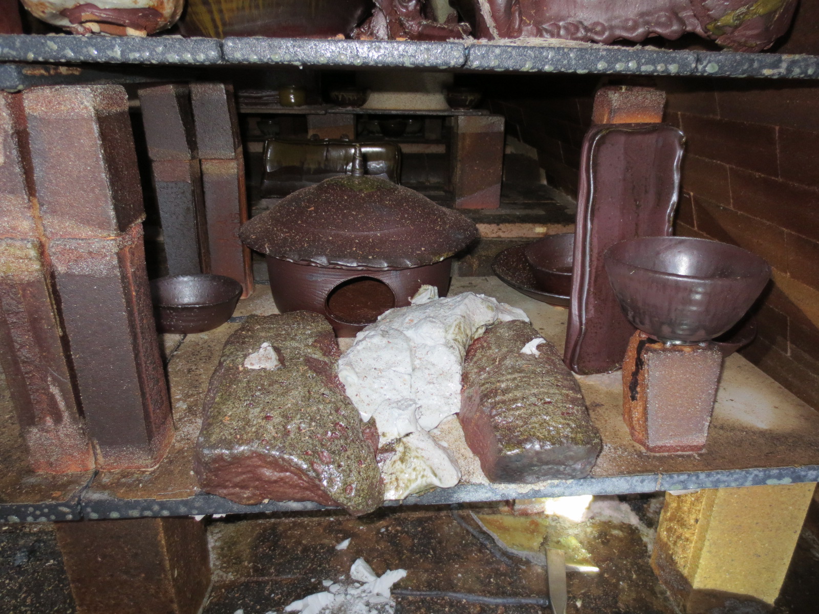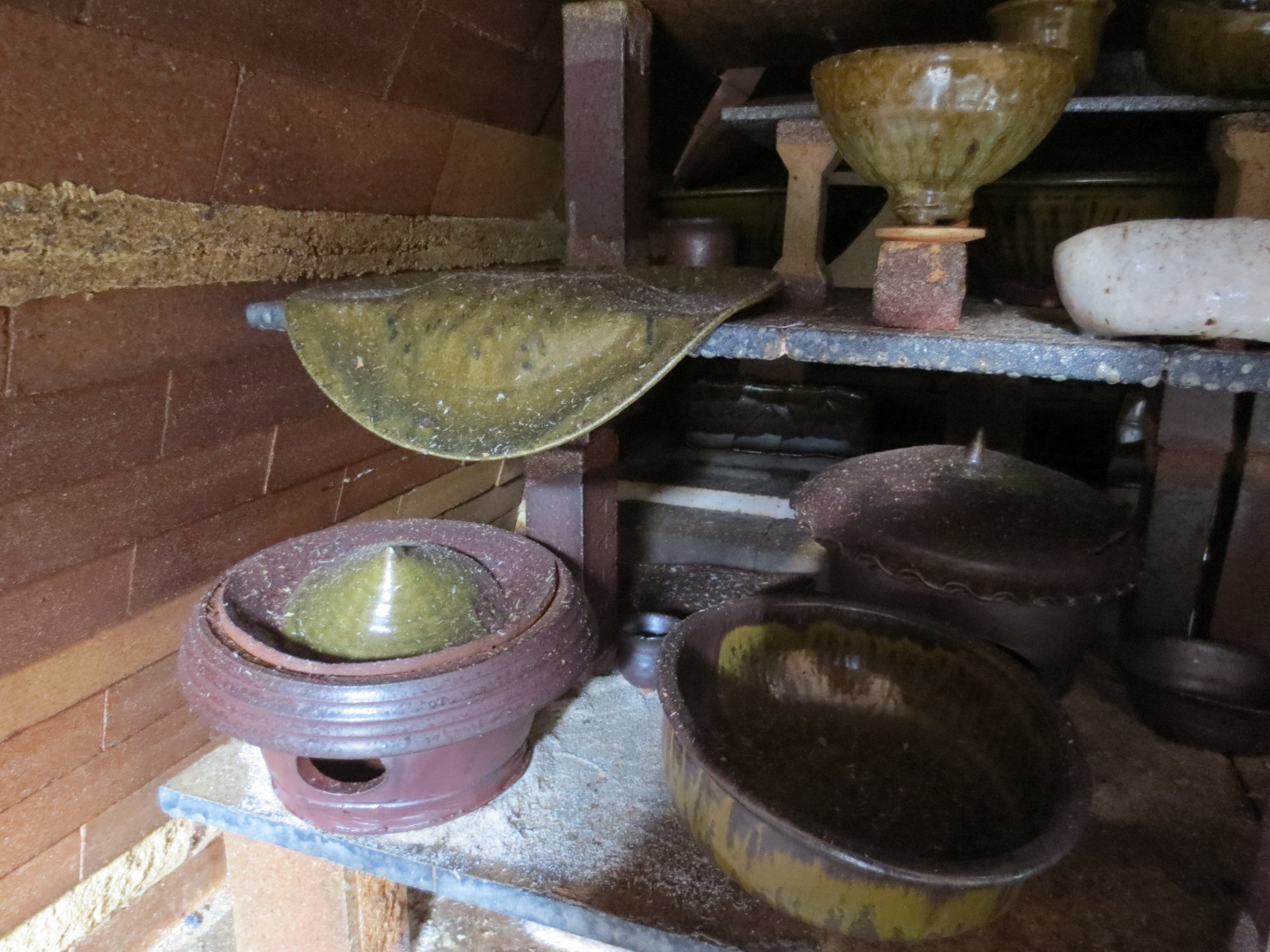 The unloaded pots have now been hammered, moved inside the studio, or are getting refired. The ones that have been moved inside the studio are starting to get cleaned up and polished, in preparation for next spring’s shows.