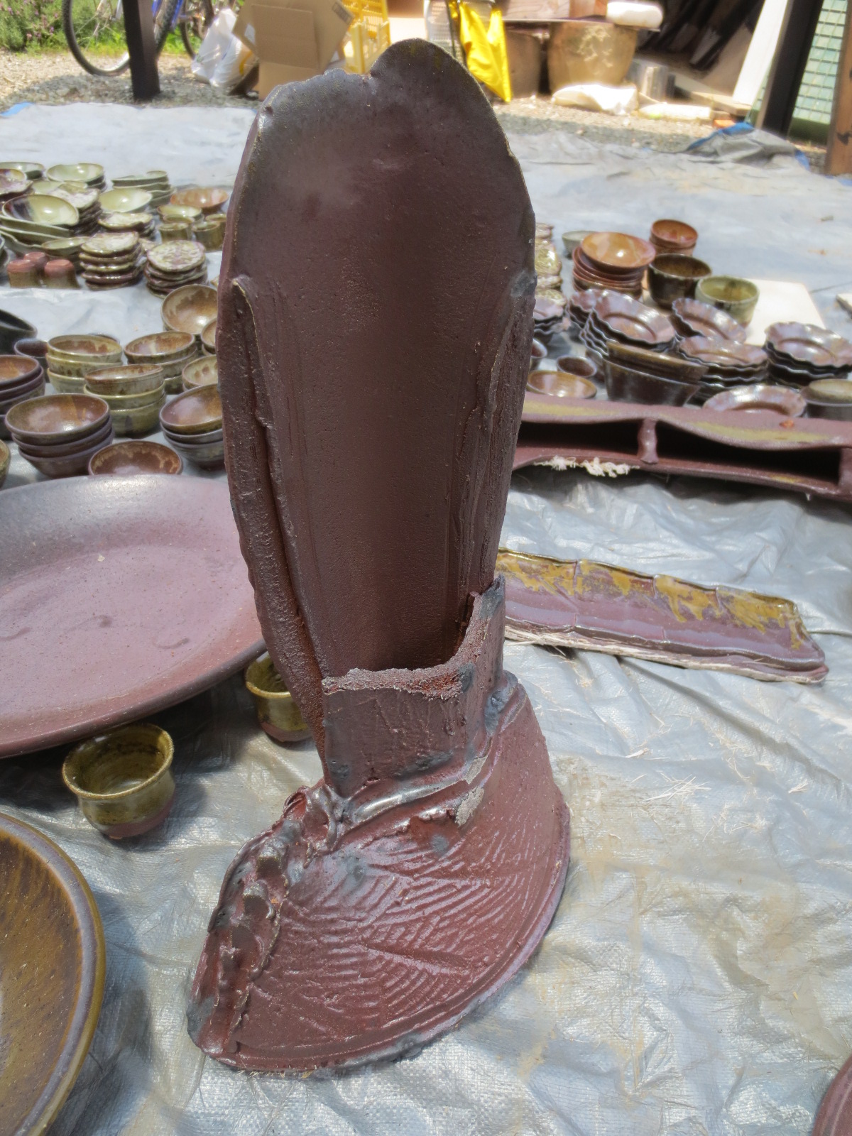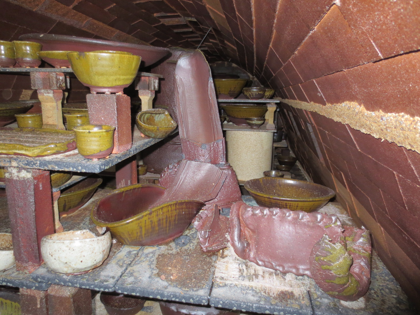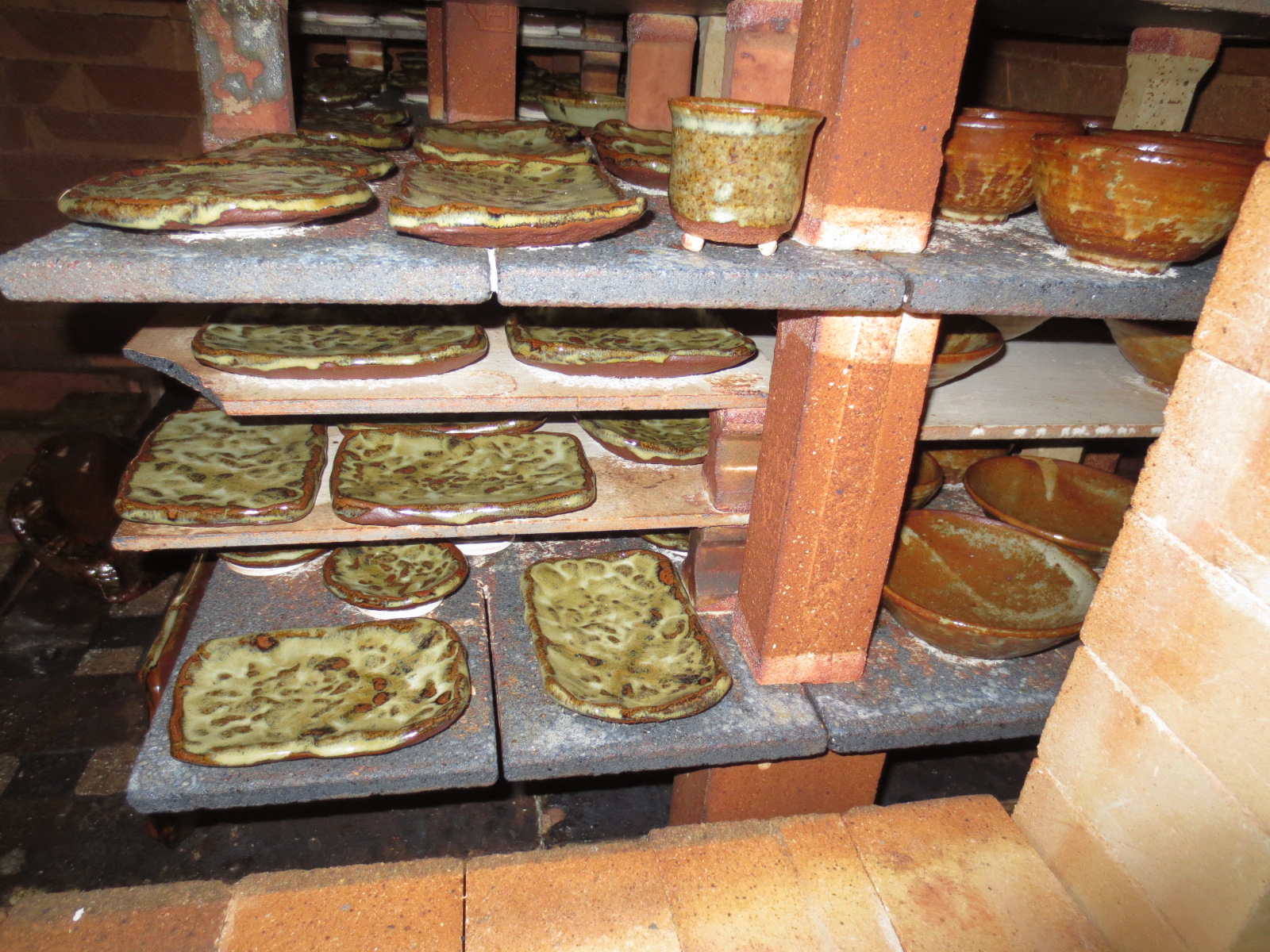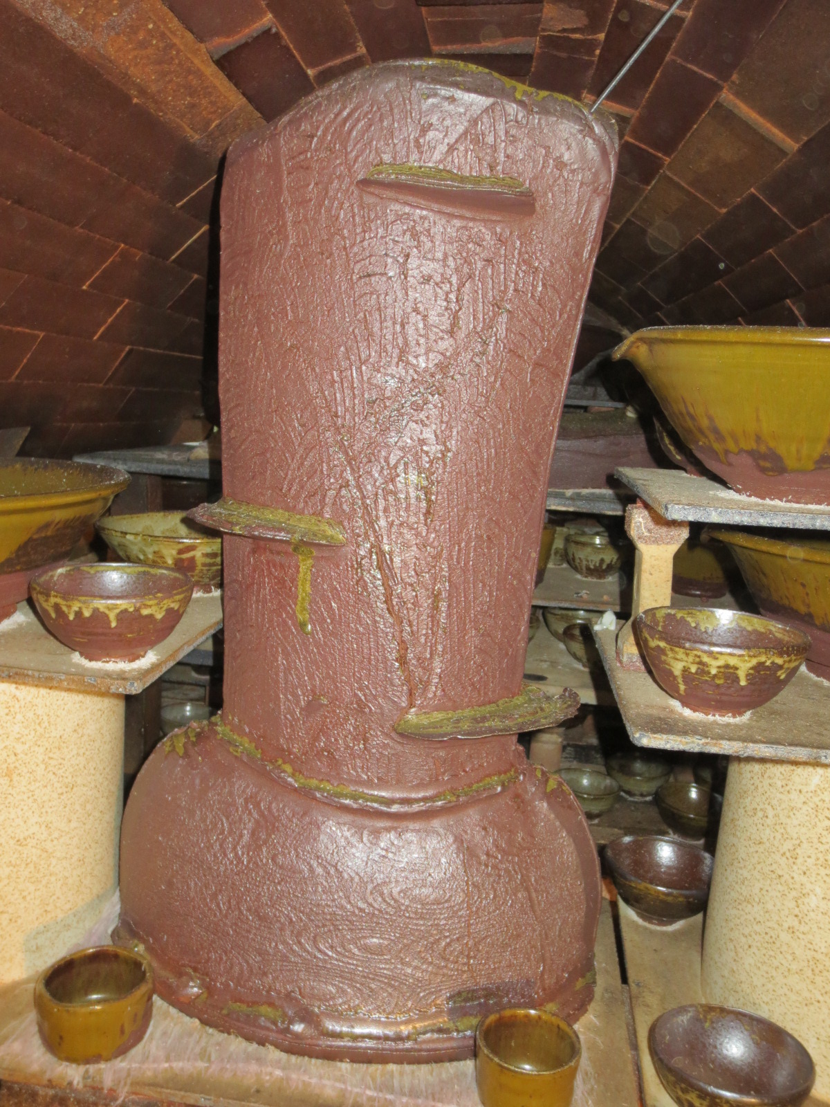 The unloaded pots have now been hammered, moved inside the studio, or are getting refired. The ones that have been moved inside the studio are starting to get cleaned up and polished, in preparation for next spring’s shows.