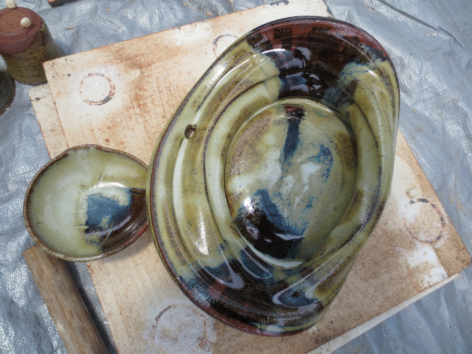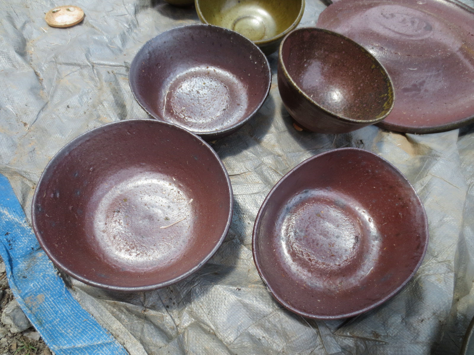 Here are some of the pots that I started cleaning up today. Most of them are small dishes, ranging from 10 – 17cm across. All sizes listed are width, and are approximate measurements.